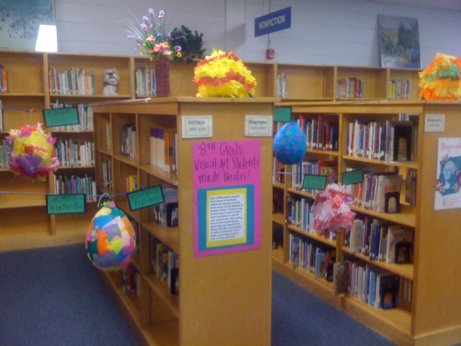 In honor of Kirby Middle School's 2010 Hispanic Cultural Awareness Program, the 8th grade Art 2 students created a VARIETY of art for display to educate peers and commemorate the event. The painted paper mache skulls in honor of Dia De Los Muertos were just some of the many types of sculptures studied and created.